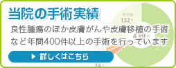当院では良性腫瘍のほか皮膚がんや皮膚移植の手術など年間400件以上の手術を行っています。